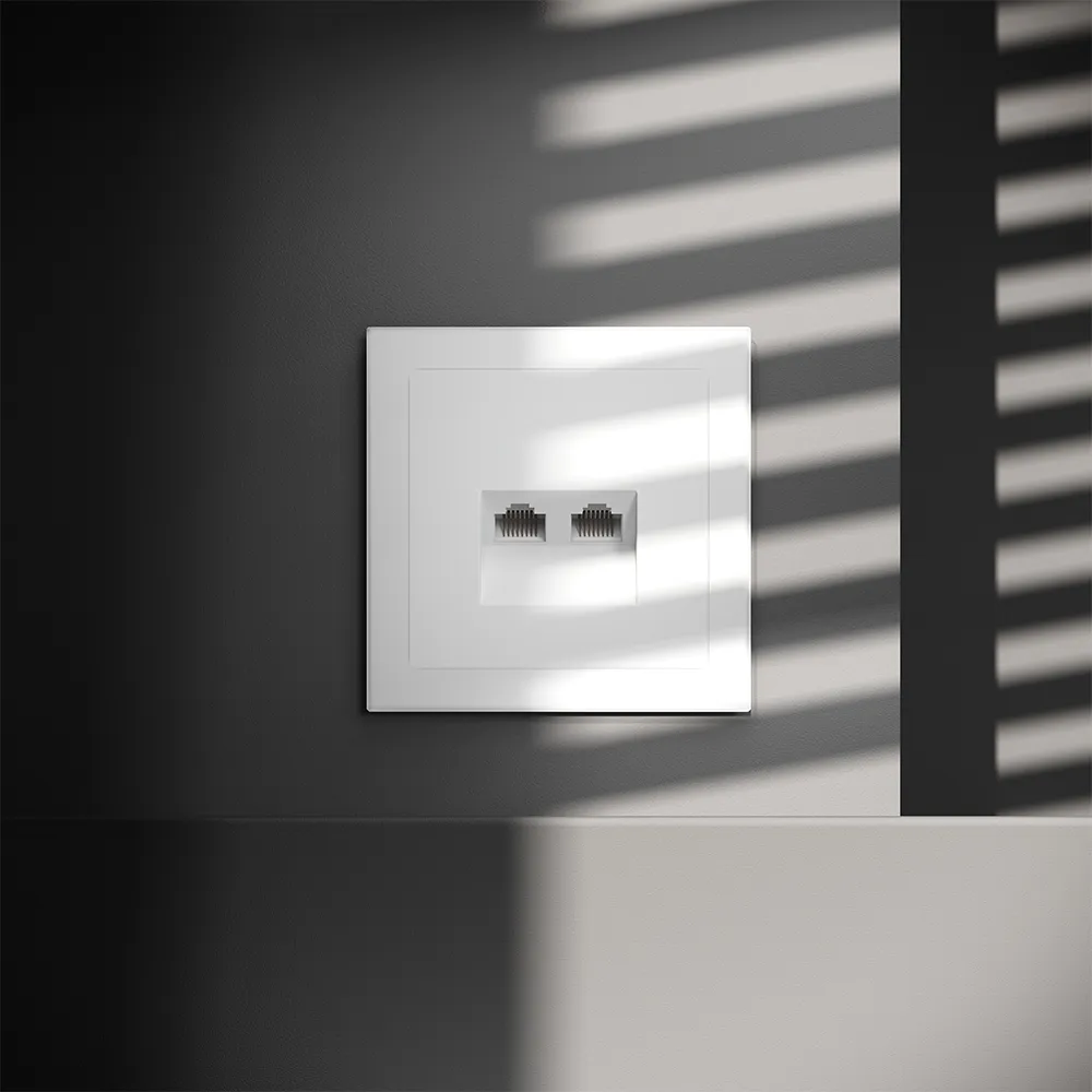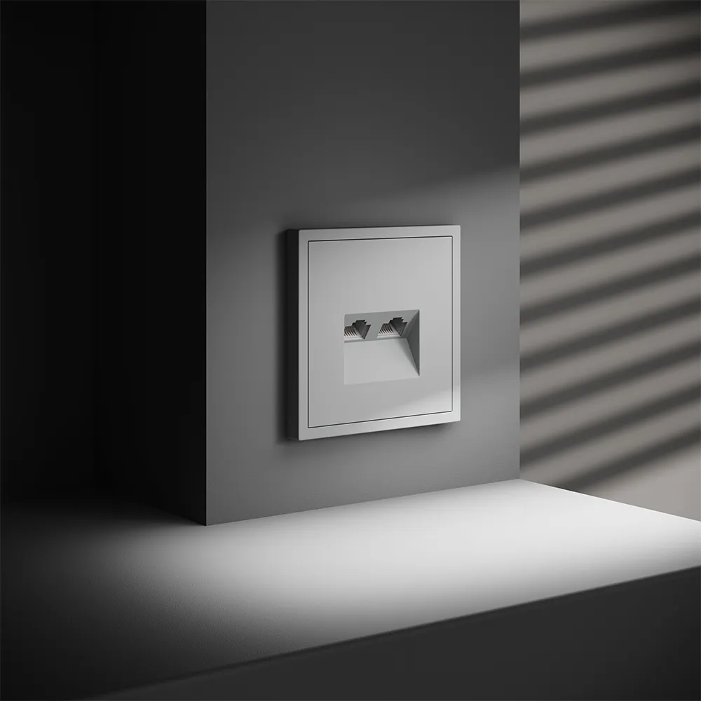 VOLTUM — качество, где цифровая инфраструктура становится частью интерьера. Выбирая двойную компьютерную розетку Cat.6 исполнении, вы обеспечиваете максимальную производительность сети и безупречную эстетику на стене.