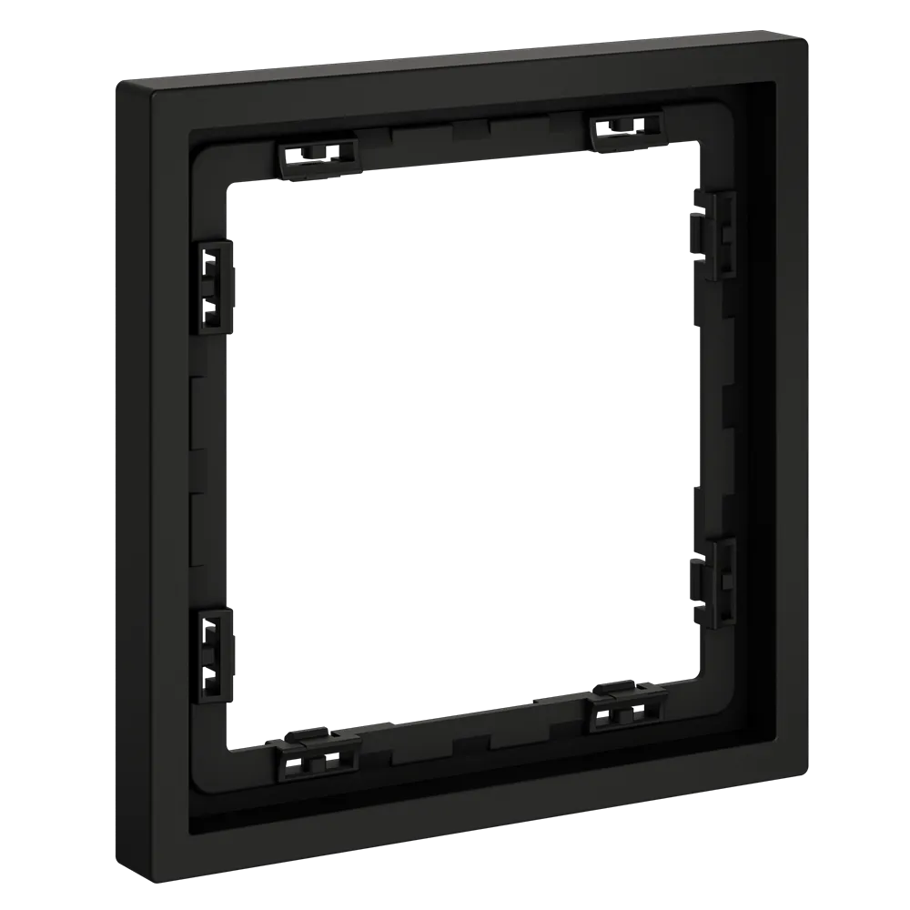 Обеспечивает быстрое и легкое соединение механизма с рамкой. Восемь фиксаторов по периметру нивелируют неровности стены и надежно удерживают конструкцию.